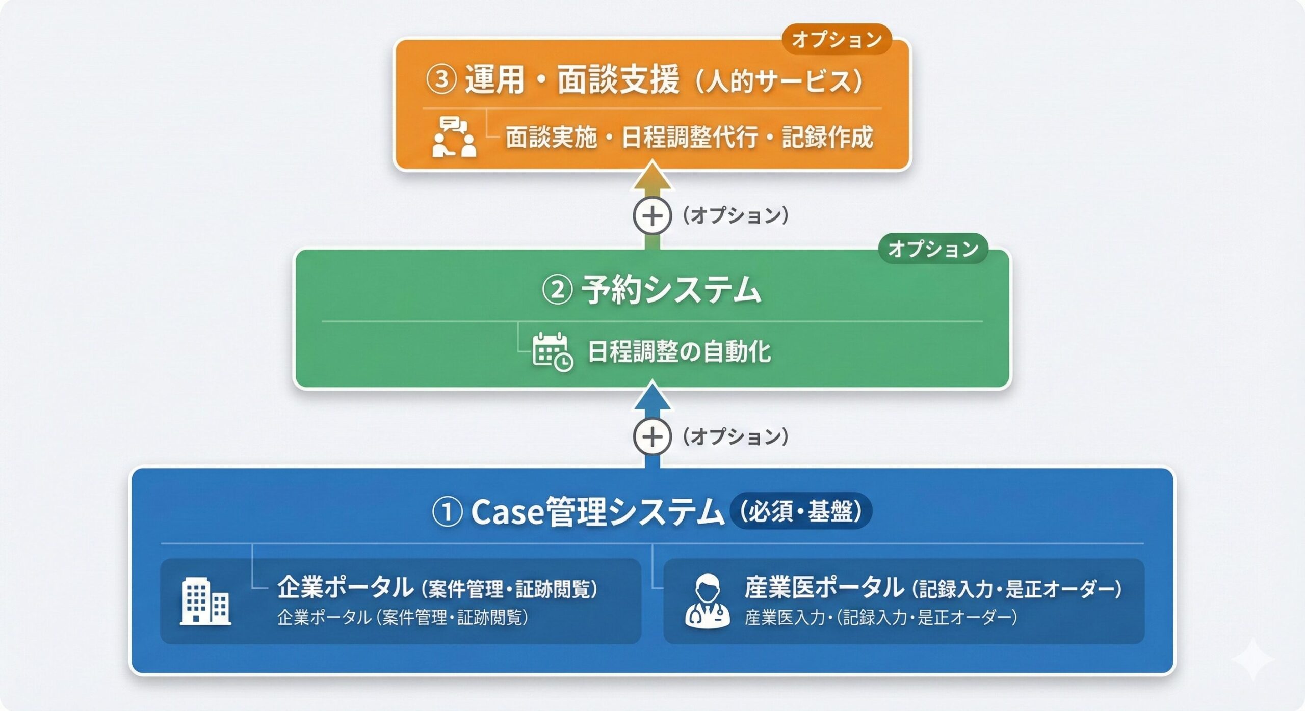 | 産業医ポータル | 構造化記録入力・是正オーダー発行・実行ログ要求 |